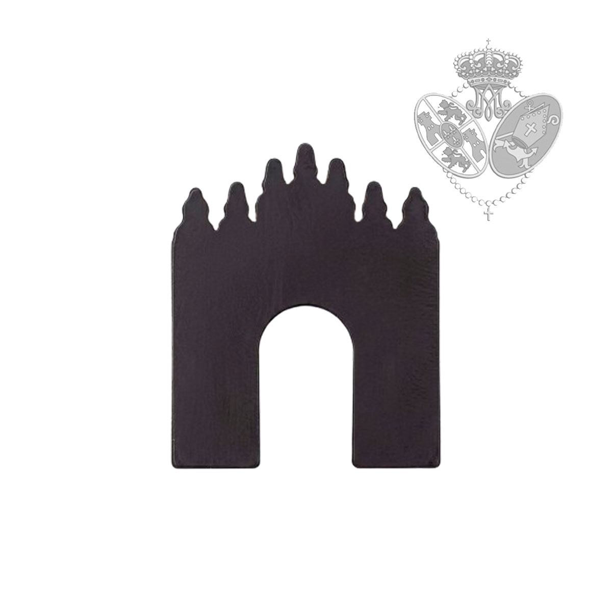 Diseño Detallado: Incluye la silueta clásica del arco en su característico color albero y blanco, coronado con los pináculos representativos y la imagen de la Virgen en la hornacina central.